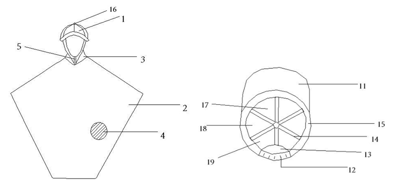 领口设有连接件,所述的连接件为魔术贴、钮扣等,连接件的增加可以防风、挡雨、防灌水,避免雨水从颈部落入身体上。