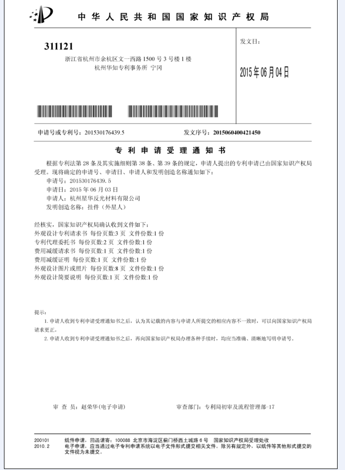 申请时间:2015年6月3日。受理时间:2015年6月4日。